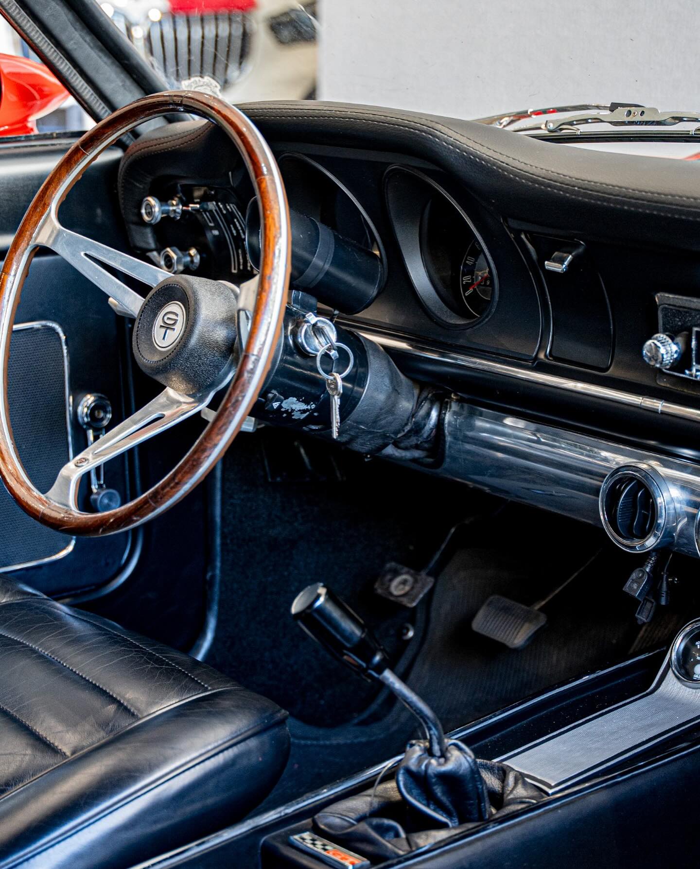 Motor V8, Placa preta, Design clássico, Interior luxuoso, Peças originais e restauradas